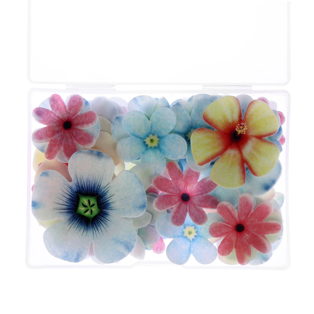 50 шт.уп. клейкие рисовые цветы, кекс, Топпер, зернистость, аквабумага, цвет еды, Свадебная вечеринка, кондитерские инструменты, горячая распродажа
