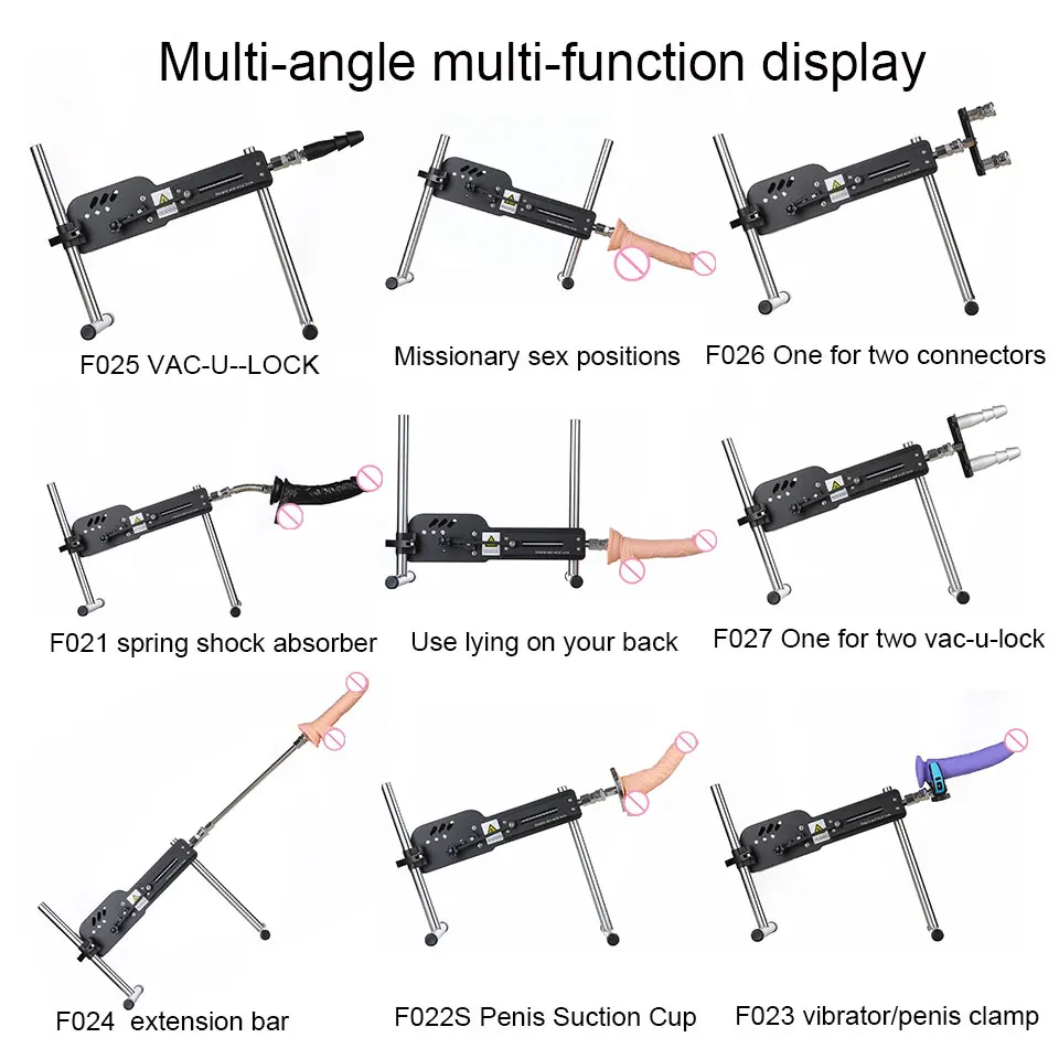 Механическая информация о секс-машинеБренд: FREDORCHМодель продукта: F19Функция продукта: Телескопический пульт дистанционного управленияЭлектрический Вход: 100-240 В, 1,5a 50-60 Гц подходит для любой страны мираЭлектрический выход: 24 В DC 3AТип двигателя: турбо мотор-редуктор, непрерывная работаХарактеристики двигателя: 24 В DC 3A сверхмощный турбо-моторДлина хода: от 3 до 9 смМощность: 70 ВтКрутящий момент: 20N.CMБесконечная скорость: от 0 до 285 оборотов в минутуЗвук: от 30 до 38 дБРазмер: 47*13,5*30 смВ собранном виде Вес: 5,3 кгКорпус: алюминийЦвет: черныйРегулируемый угол: -45 градусов до + 90 градусов вы можете настроить быстро и надежно в течение нескольких секунд. Очень легко и эффективно. Он также может вращаться горизонтально на 360 градусов. Очень стабильная машина