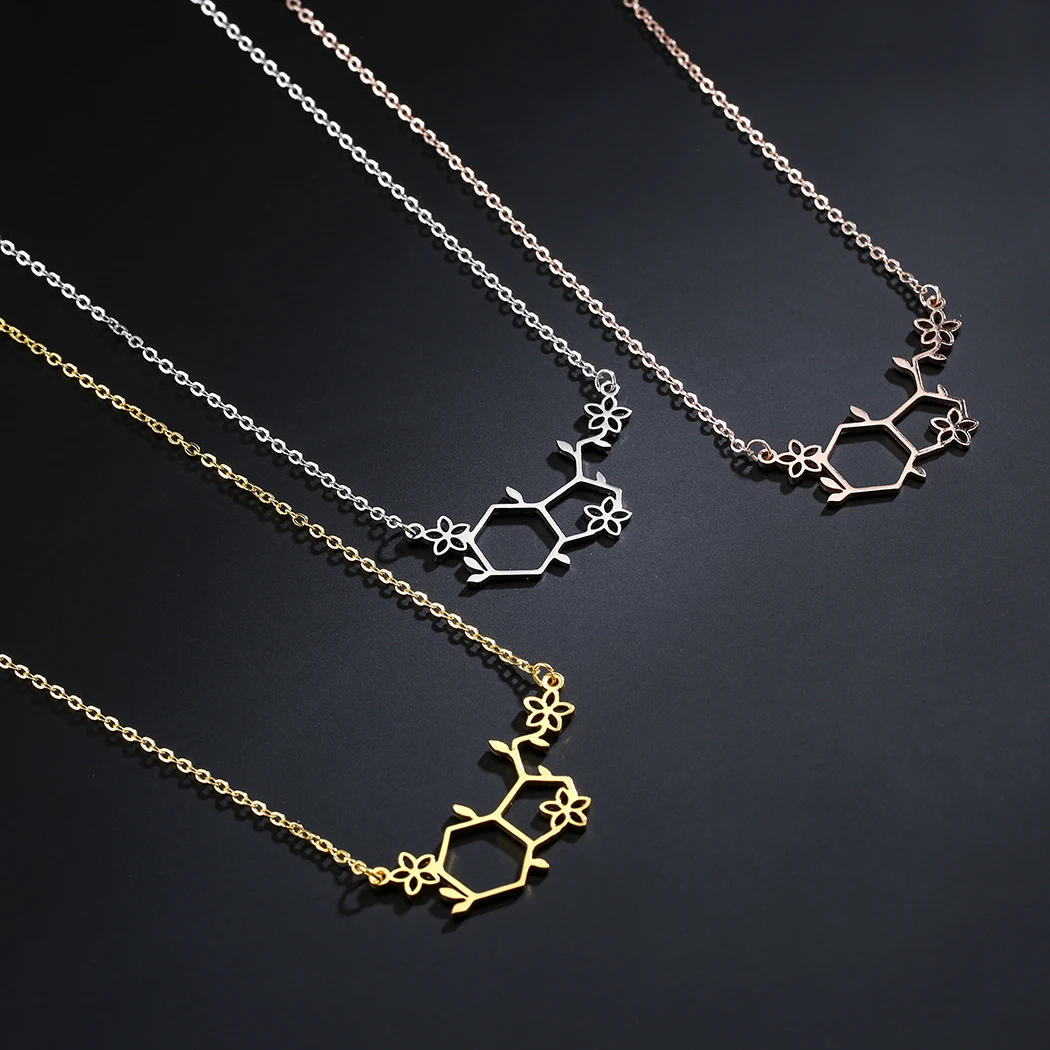 Ожерелье QIMING с подвеской-цветком для женщин, геометрическое ожерелье с молекула серотонина
