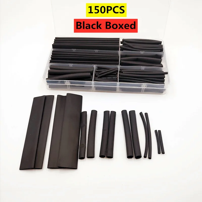 150 штук в штучной упаковке 2:1 черная термоусадочная трубка