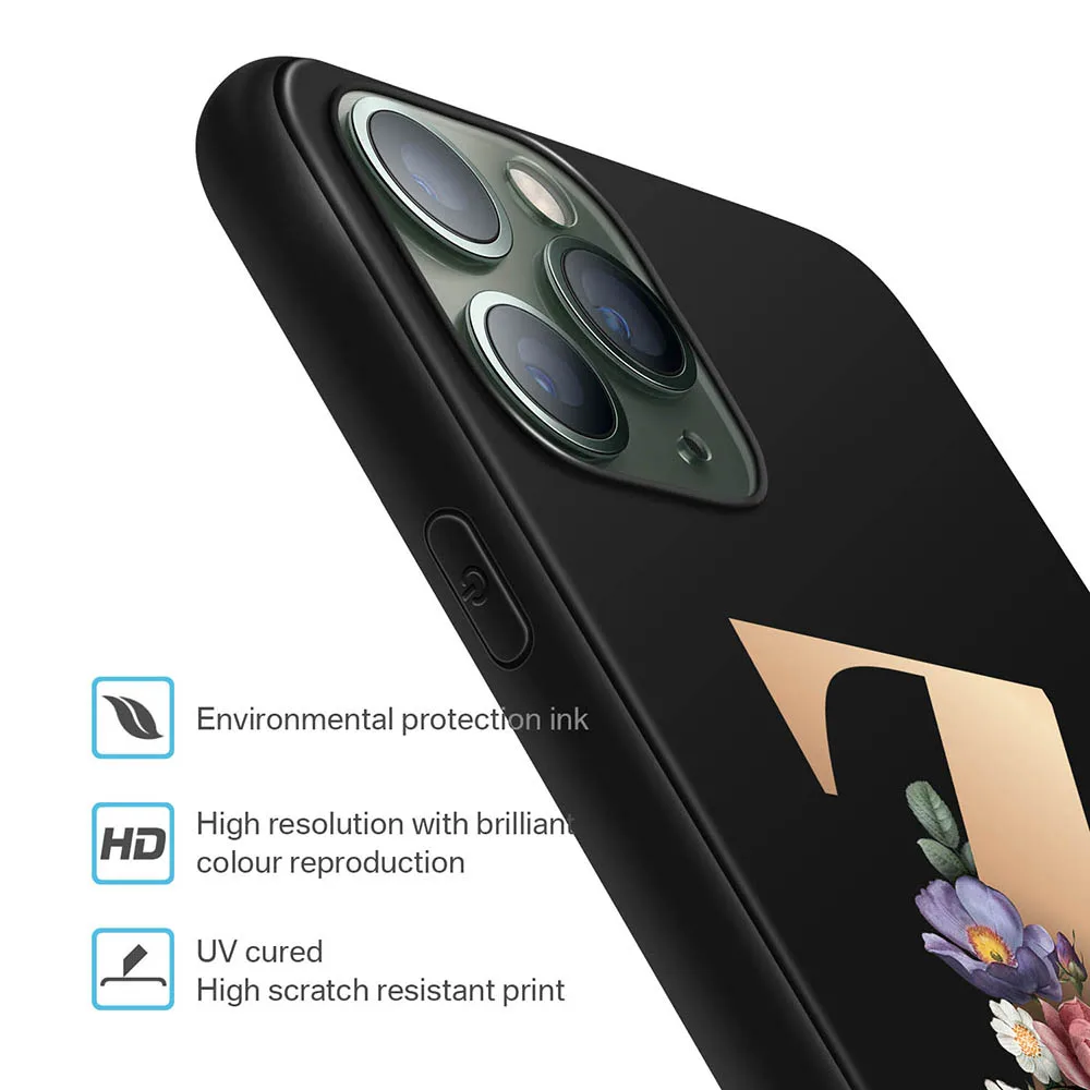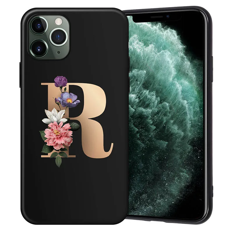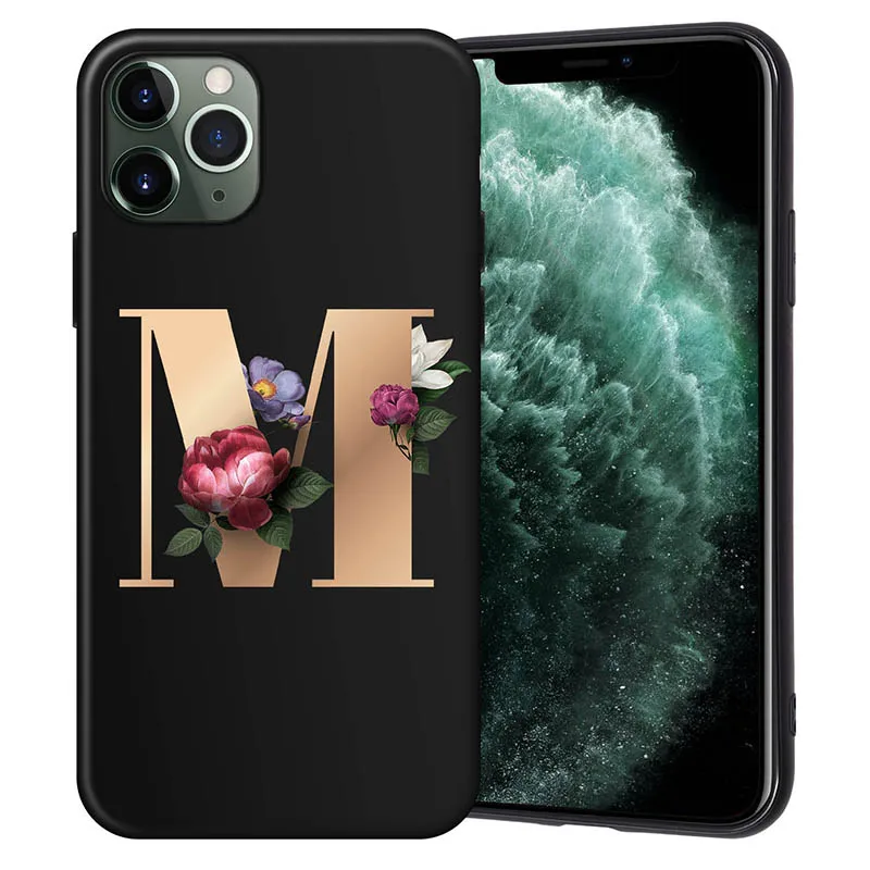Мягкий силиконовый чехол с буквами алфавита и цветами для iPhone 11...