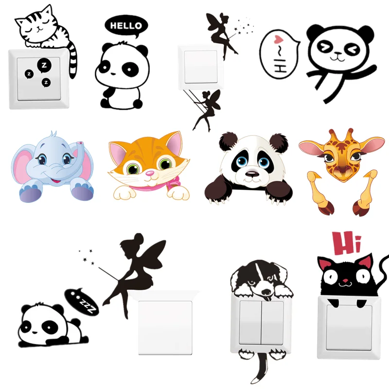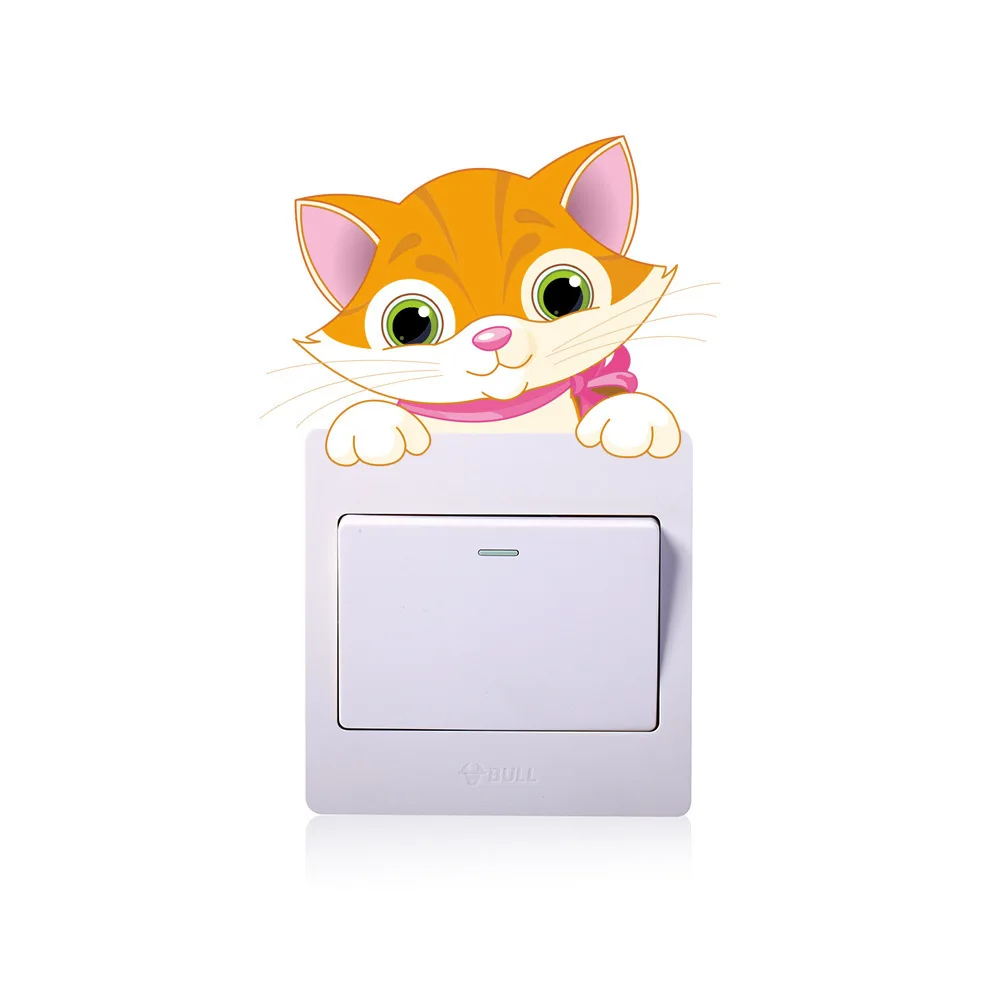 Настенные наклейки-переключатель с мультяшным животным котом, декор для комнаты, ПВХ переключатель на выходе, милый переключатель, наклейки, аксессуары для дома