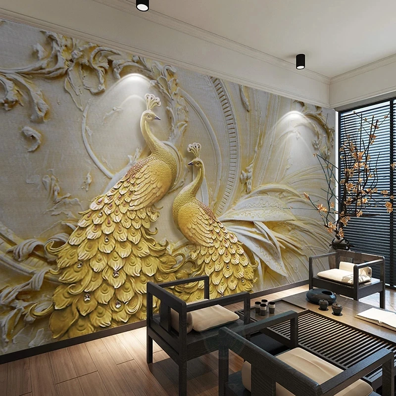 Пользовательские обои для стен 3D стереоскопический тисненый Золотой Павлин фон настенная живопись Гостиная Спальня Декор водонепроницаемый