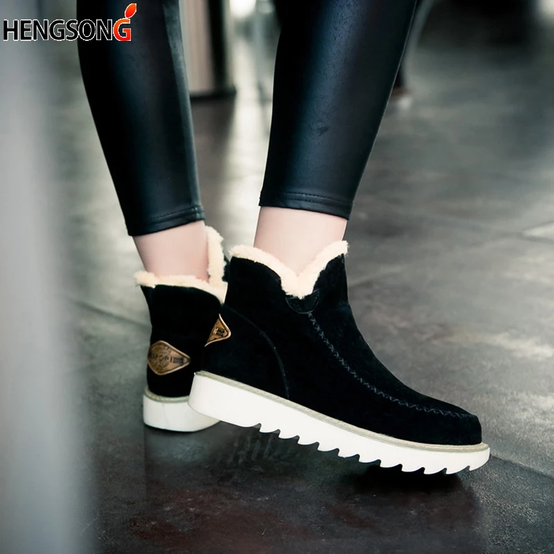 Осенне-зимние женские зимние ботинки теплые плюшевые ботильоны с круглым носком женская обувь без шнуровки черные бежевые коричневые размера плюс 34-43