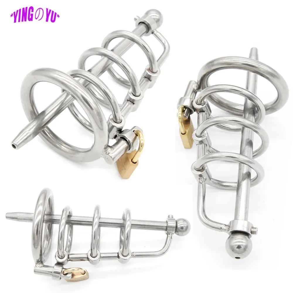Мужское Целомудрие из нержавеющей стали бондажный комплект БДСМ ремень с членом с катетером петух клетка кольцо для пениса Взрослые Эротические Секс-игрушки для мужчин