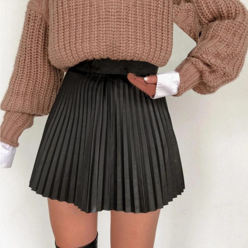 Женская плиссированная юбка из искусственной кожи, черная короткая ...