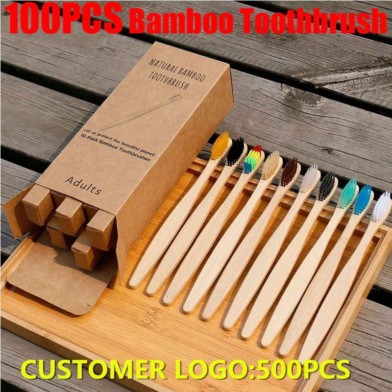 102050100 шт Зубная щётка eco-friendly Радуга из мягкого бамбукового волокна Зубная щётка биоразлагаемые зубная щетка однотонные бамбуковой ручкой