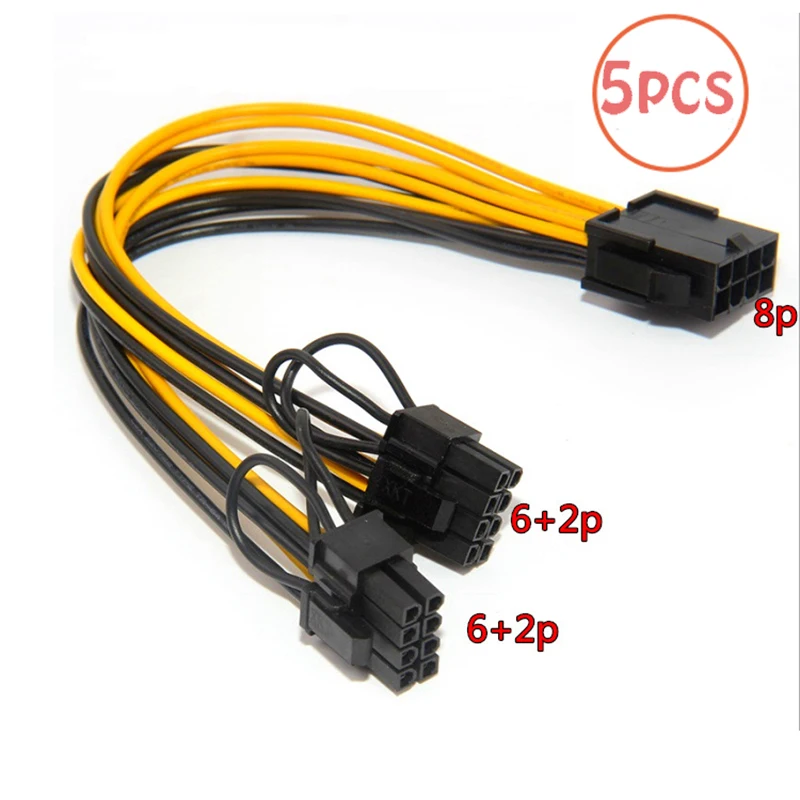Графическая карта для процессора или графического процессора, 5 шт., 8-Pin на 2*8-pin(6 + 2), для майнинга, двойной PCI-E, PCIe 8Pin, сплиттер, кабель, 21 см