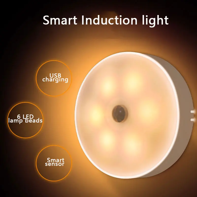 Ночсветильник с 6 светодиодными лампами и датчиком движения, с зарядкой по USB
