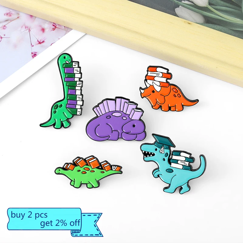 Эмалированный значок с динозавром и книгами, брошь с животными для ...