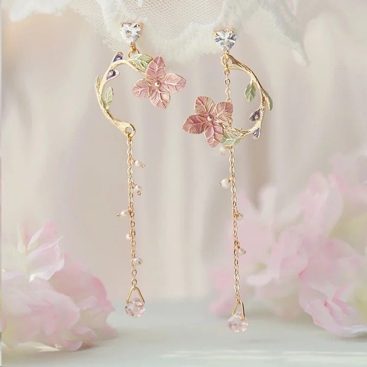 Модные серьги-подвески с лепестками роз для женщин, стразы в виде цветка, длинные висячие серьги с кисточками, женские свадебные украшения для вечеринки, подарок