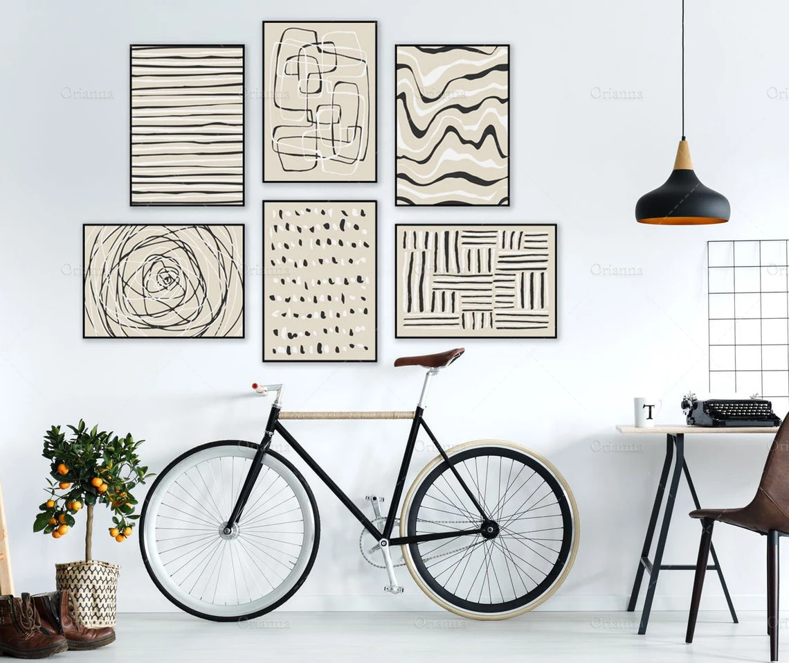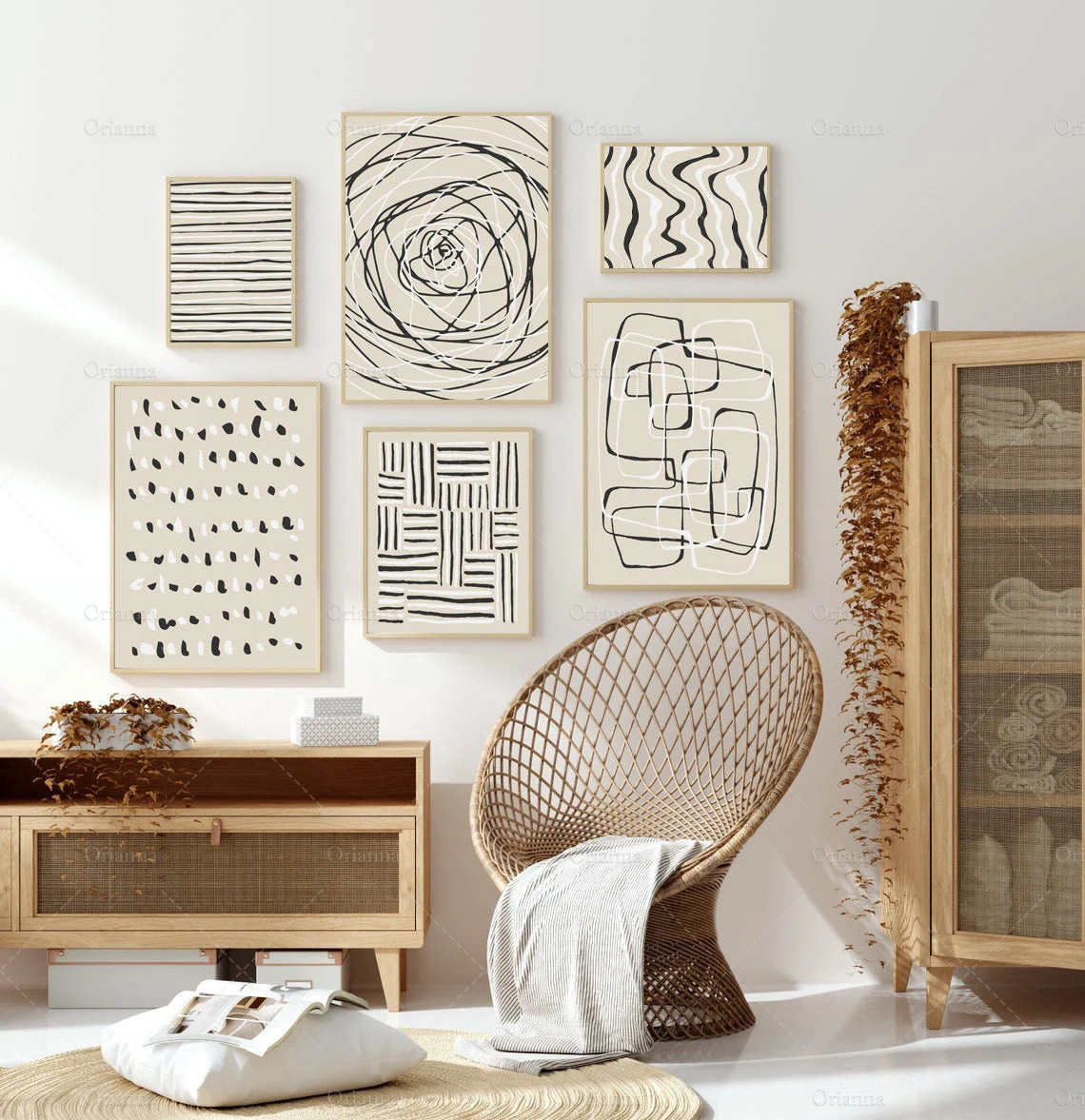 Постеры абстрактные бежево-белые, современные, средневековые, с принтом на стену, набор из 6 принтов, скандинавский стиль, домашний декор в стиле бохо для гостиной