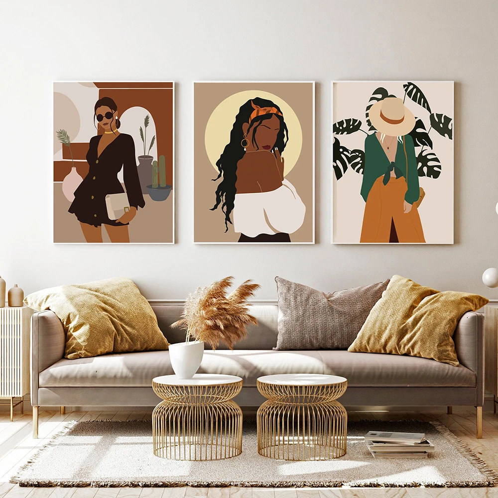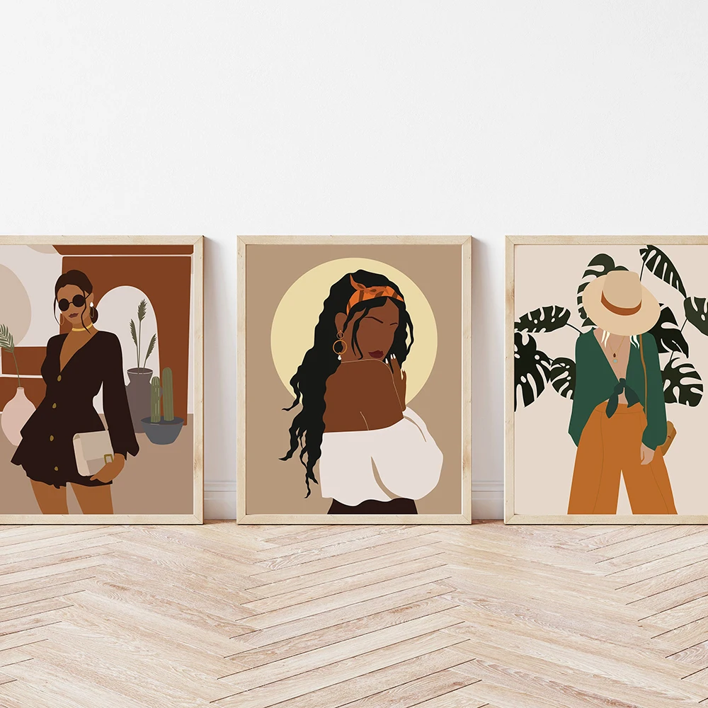 Модные африканские женские принты постер в стиле бохо Сексуальная Женская Картина на холсте женское платье Настенная картина Декор для гостиной без рамки