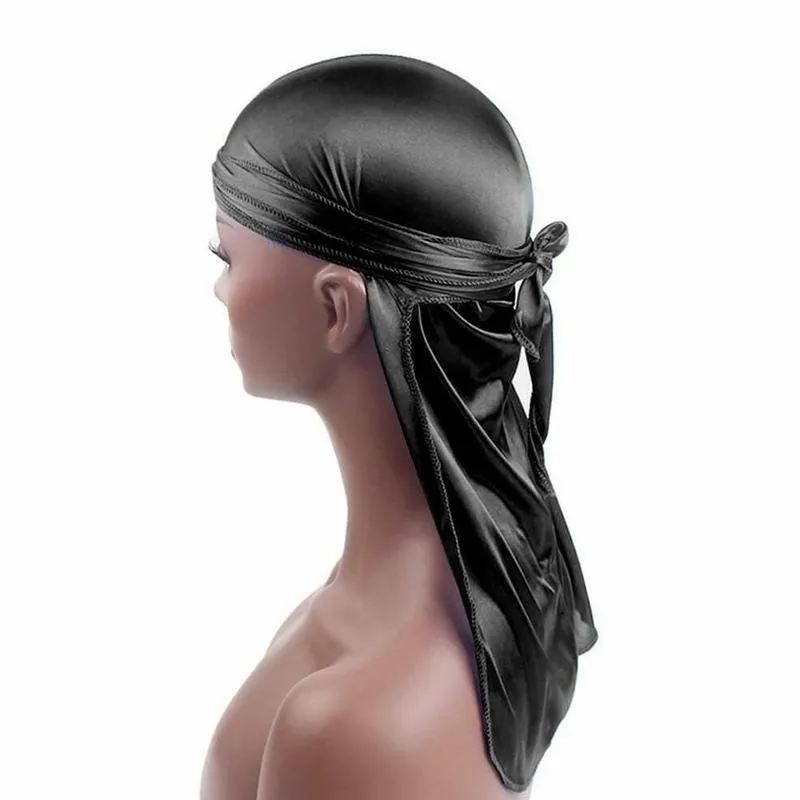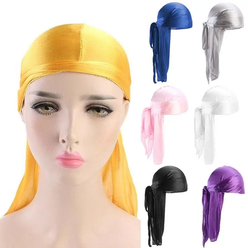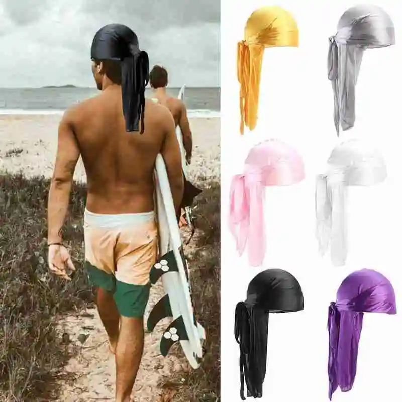 Мужские шелковистые банданы, тюрбан, шляпы парики Doo, мужские атласные байкерские длинные головные уборы, головные уборы, аксессуары для волос Durag Du-Rag
