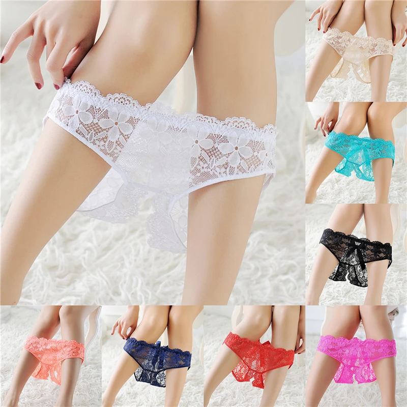 Новинка 2021, модное женское сексуальное нижнее белье, женские кружевные трусики с вырезами и бантом, женское высококачественное нижнее белье с открытой промежностью