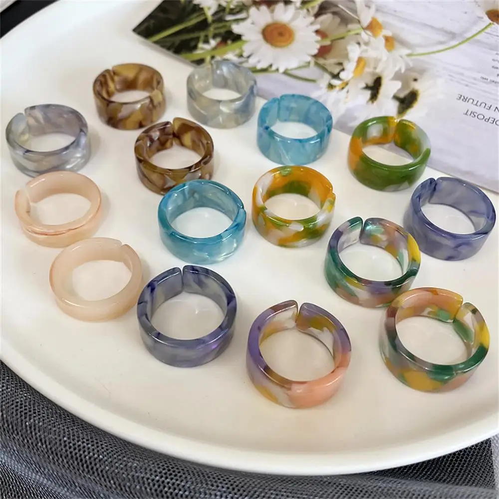 2022 Летняя мода акриловые круглые стеклянные шарики прозрачные полимерные красочные кольца винтажное простое толстое массивное кольцо женские ювелирные изделия