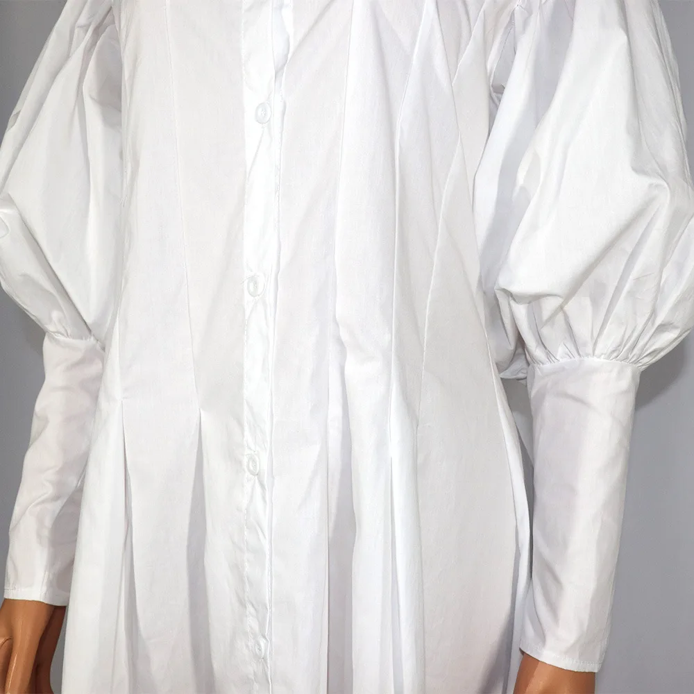 Женское офисное платье-туника средней длины, однотонное белое платье-рубашка с длинными рукавами-фонариками, V-образным вырезом и высокой талией, 2021