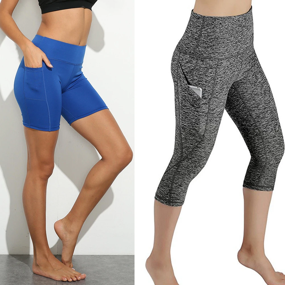 Укороченные брюки с карманом для фитнеса, женские леггинсы, высокая талия, 34, штаны для йоги, облегающие колготки для тренировок, одежда для девочек