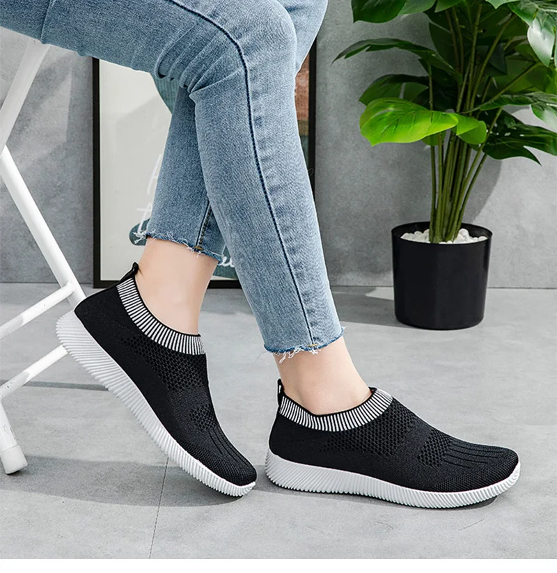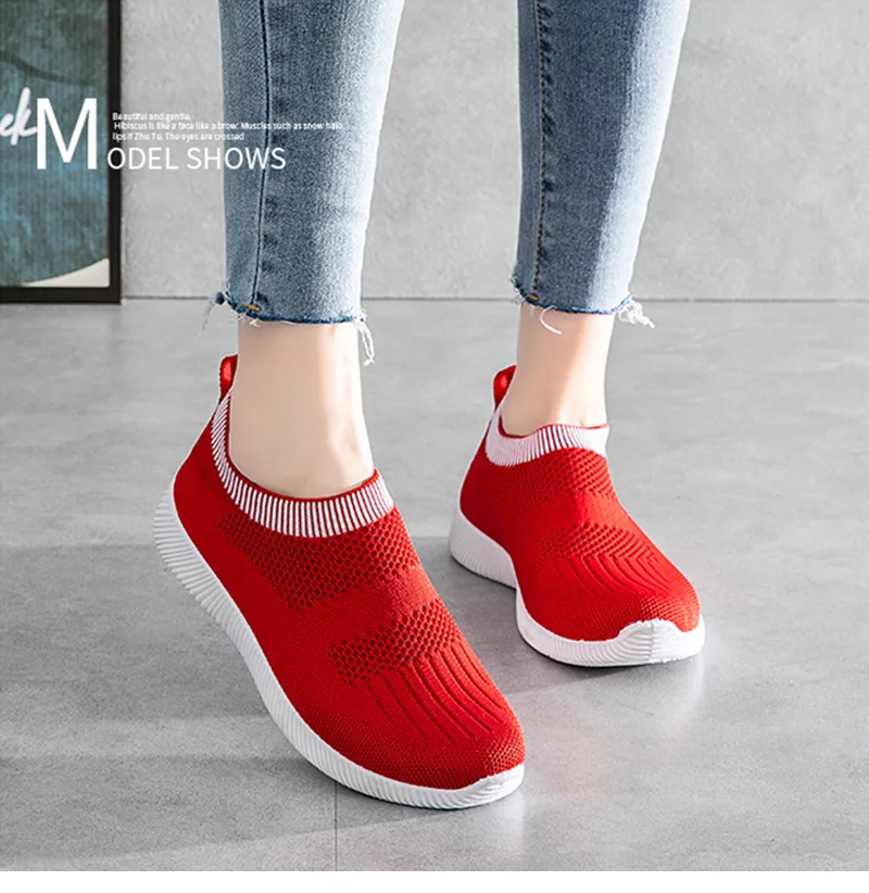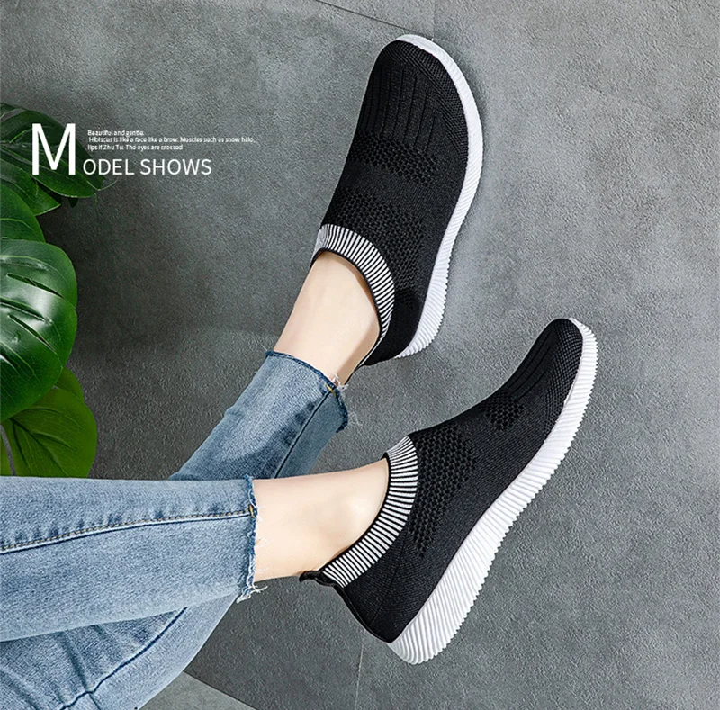 Женские кроссовки; Новинка 2021 года; Сезон весна-лето; Женская обувь; Вязаная дышащая прогулочная обувь; Спортивная повседневная обувь на плоской подошве; Tenis Feminino; Большие размеры 43