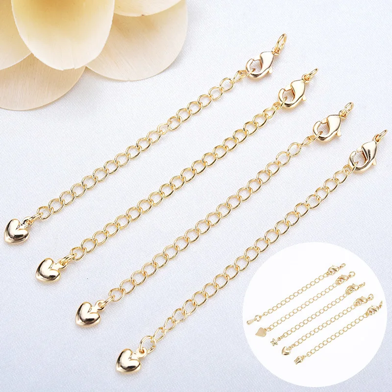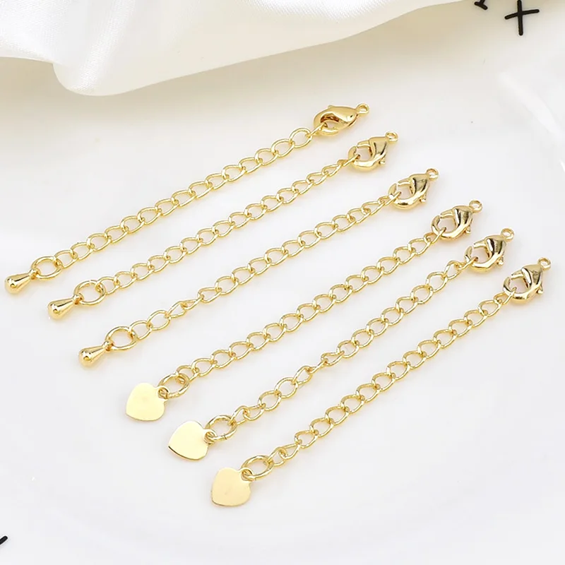 Золото удлинительные цепочки для ожерелья и браслета брелок ювелирный украшения своими руками, милый кулон-сердце карабины цепи