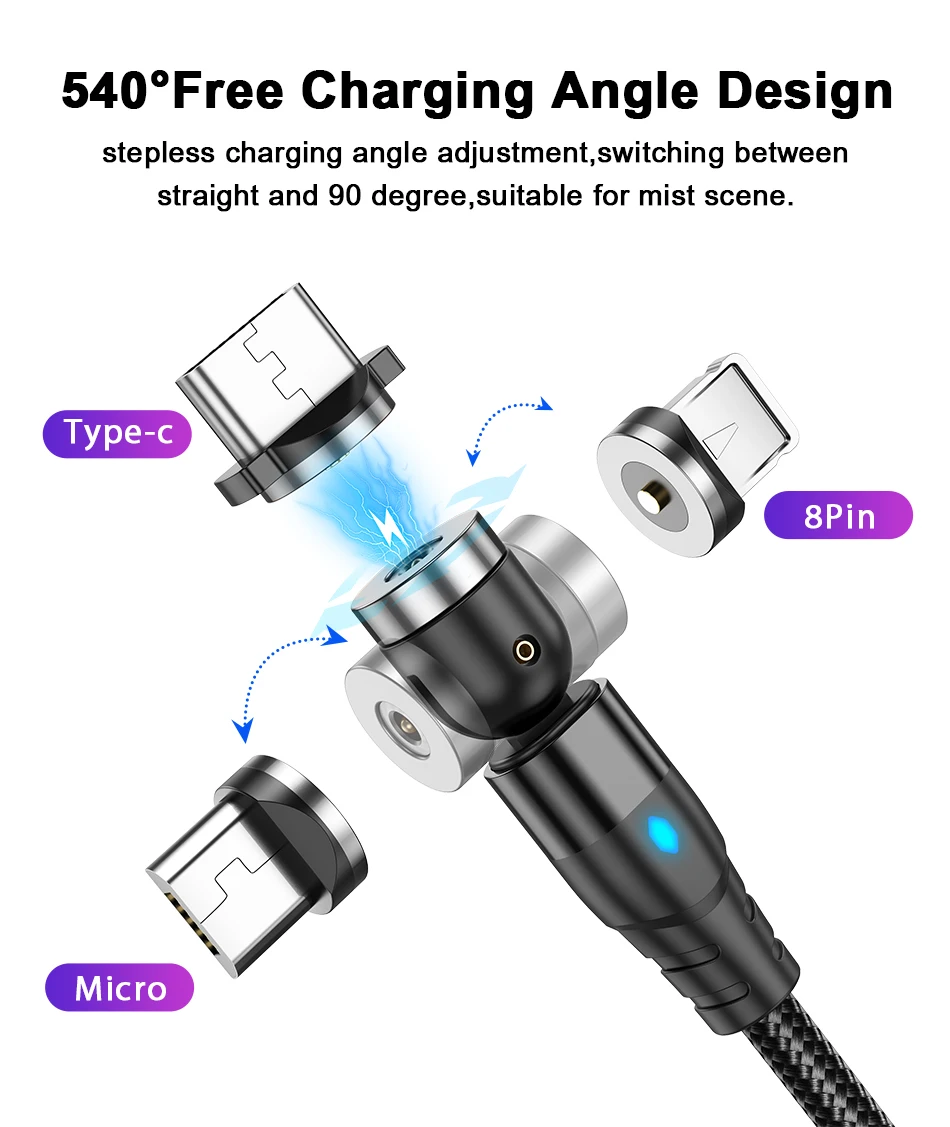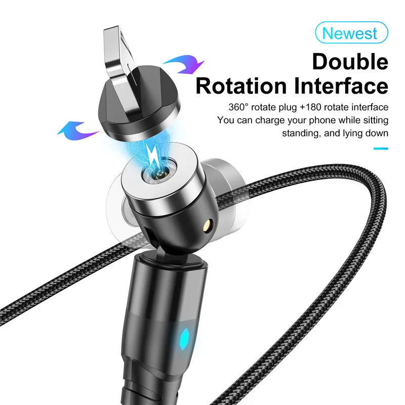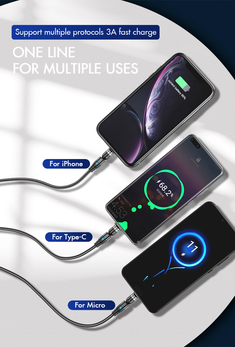Магнитный кабель Micro USB Type-C, вращающийся на 540 градусов, для iphone 11 Pro, XS Max, Samsung, Xiaomi, для быстрой зарядки и передачи данных