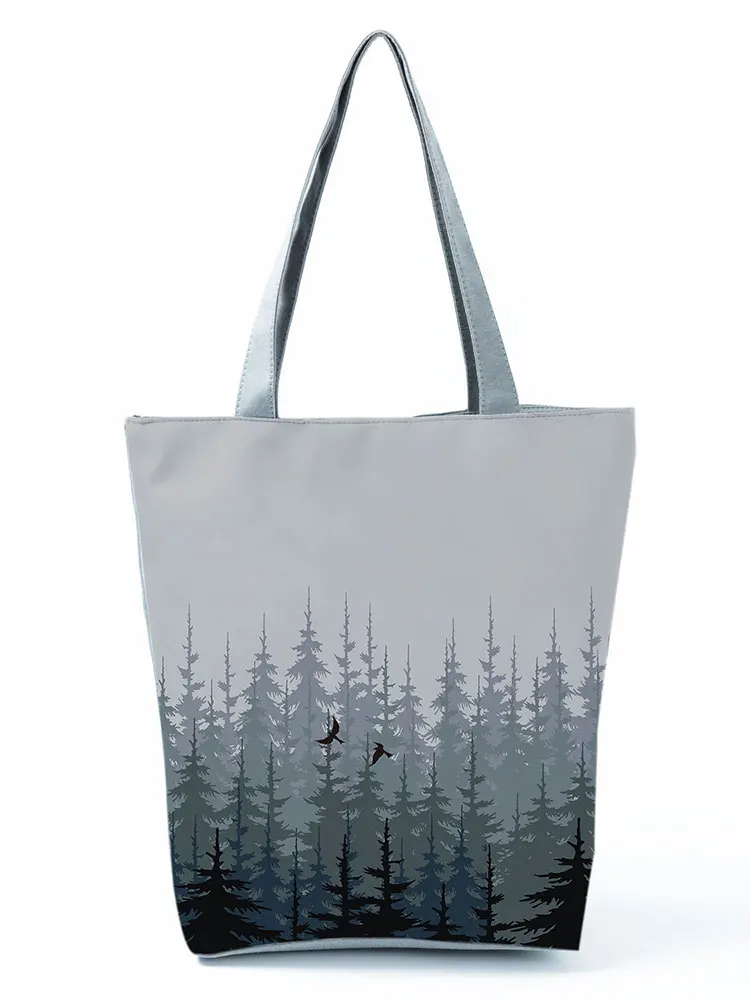 Сумка с принтом ландшафта в китайском стиле, серая складная сумка для покупок, вместительная портативная женская сумка на плечо, можно изготовить на заказ