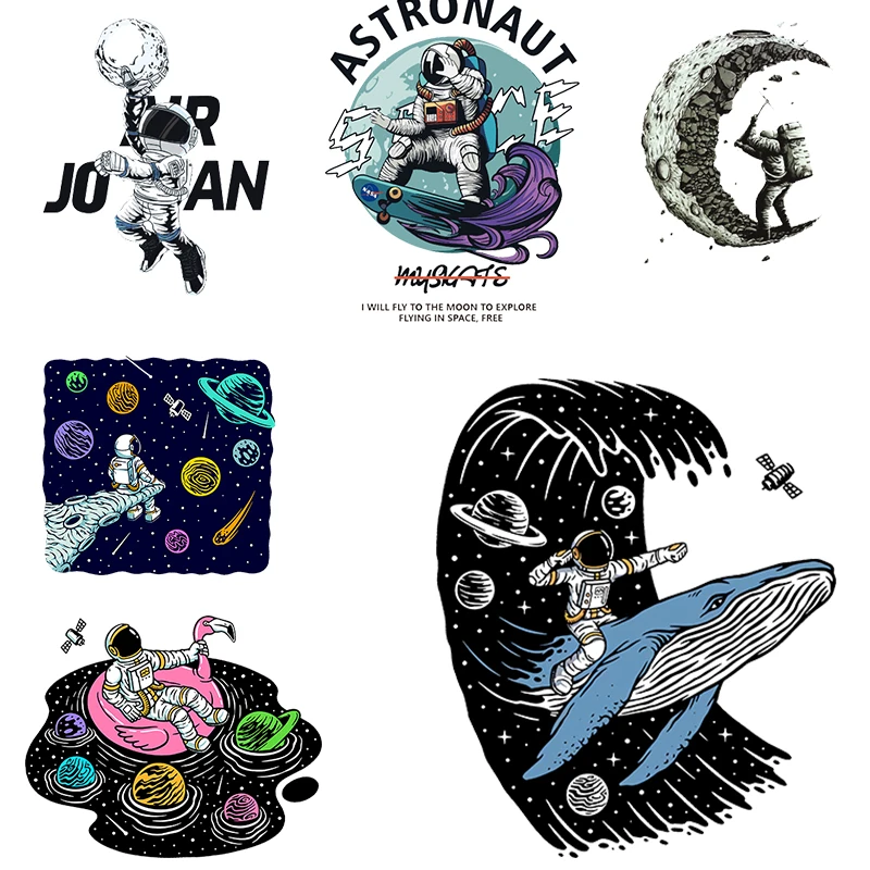 Астронавт для серфинга, теплопередача, виниловая одежда, наклейки на одежду, аксессуары, аппликация, украшение