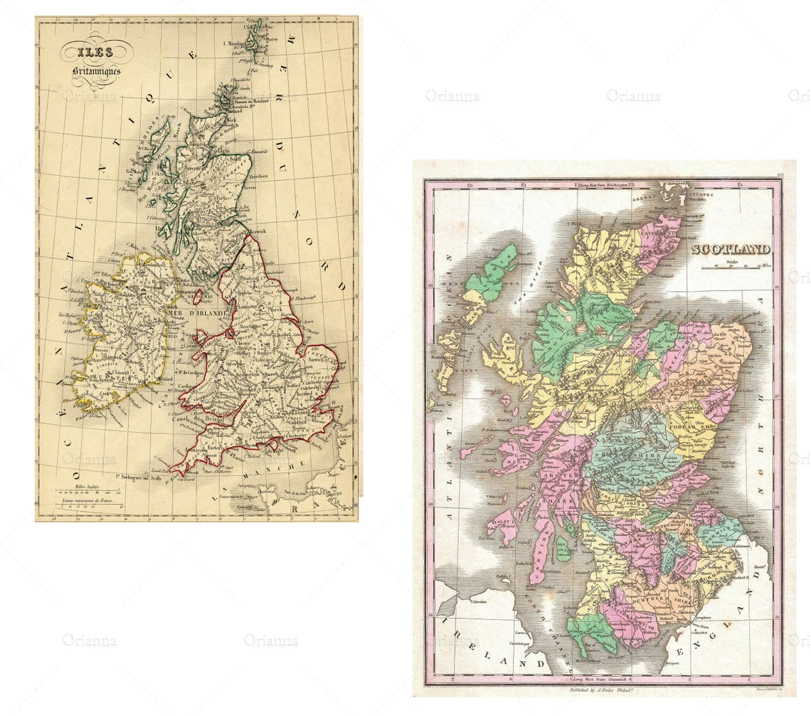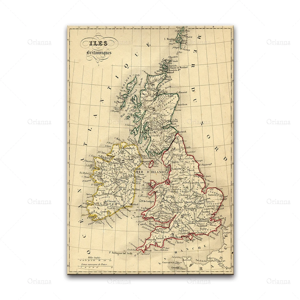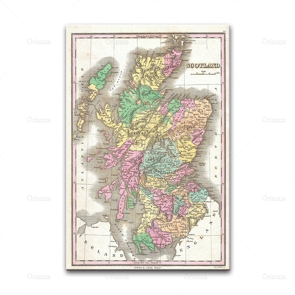 2x Карты Великобритании Шотландия карта холст Винтаж Финли 1800 плакат живопись Принт Большой Старый Европа абстрактная картина украшение на стену, живопись маслом