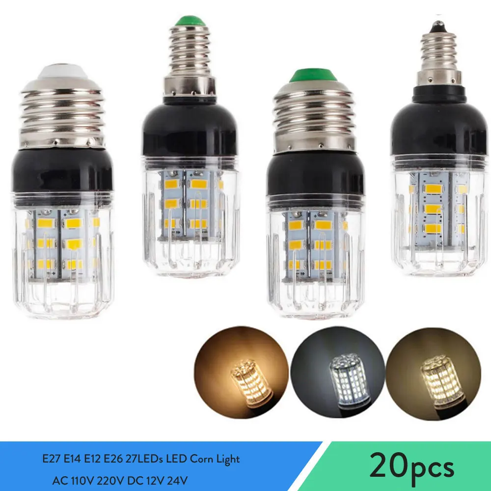 20X E27 E14 27 Светодиодный s 3 Вт светодиодное освещение SMD 5730 E12 E26 светодиодный кукурузы лампа Рождественский люстра лампа AC 110V 220V DC 12V 24V LED лампы