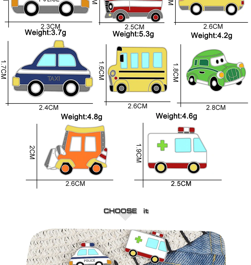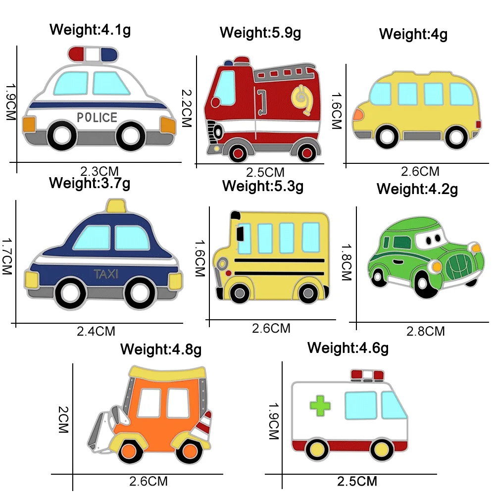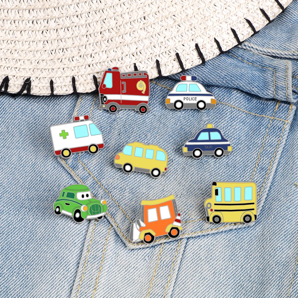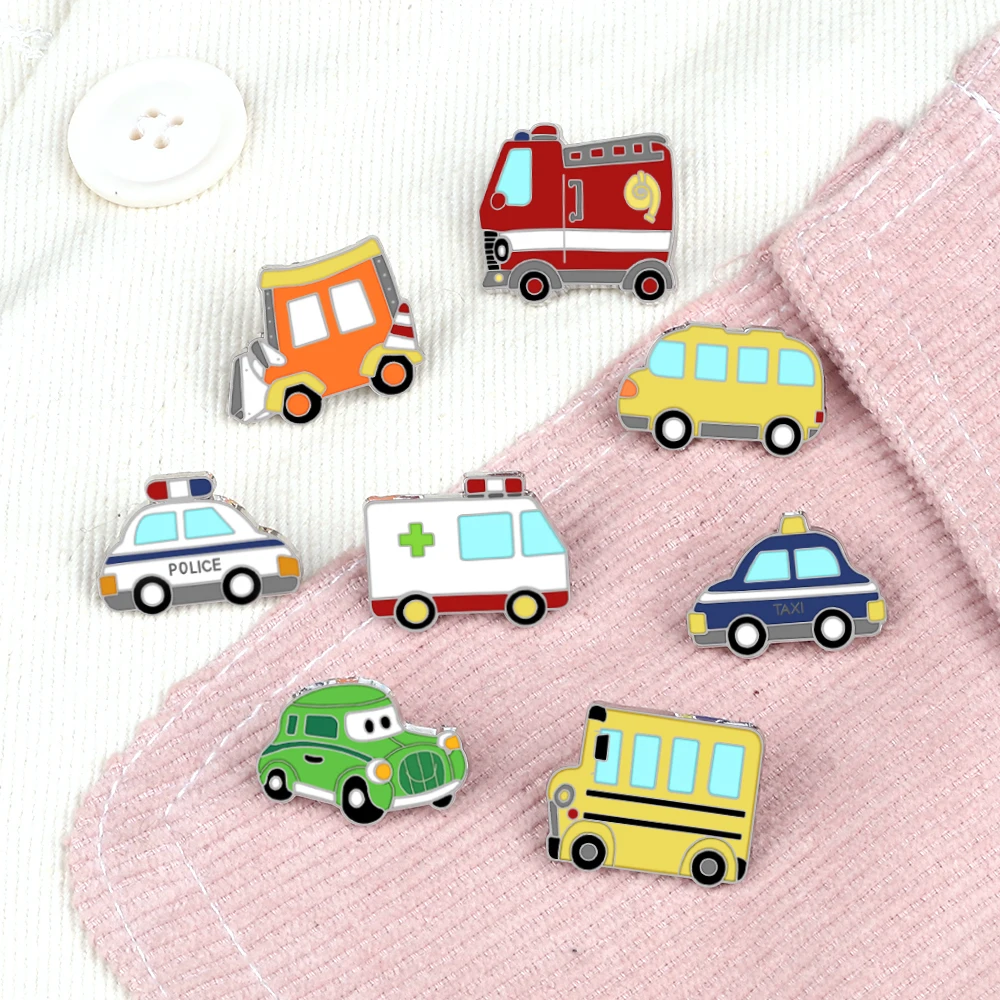 Креативная эмалированная заколка в виде симпатичного автомобиля, мультяшный значок для скорой помощи, полиции, школы, автобуса, такси, идентификация цветов, значок на лацкан сумки, ювелирные изделия