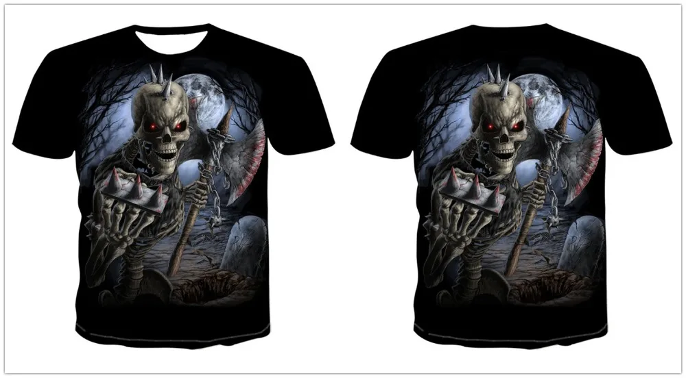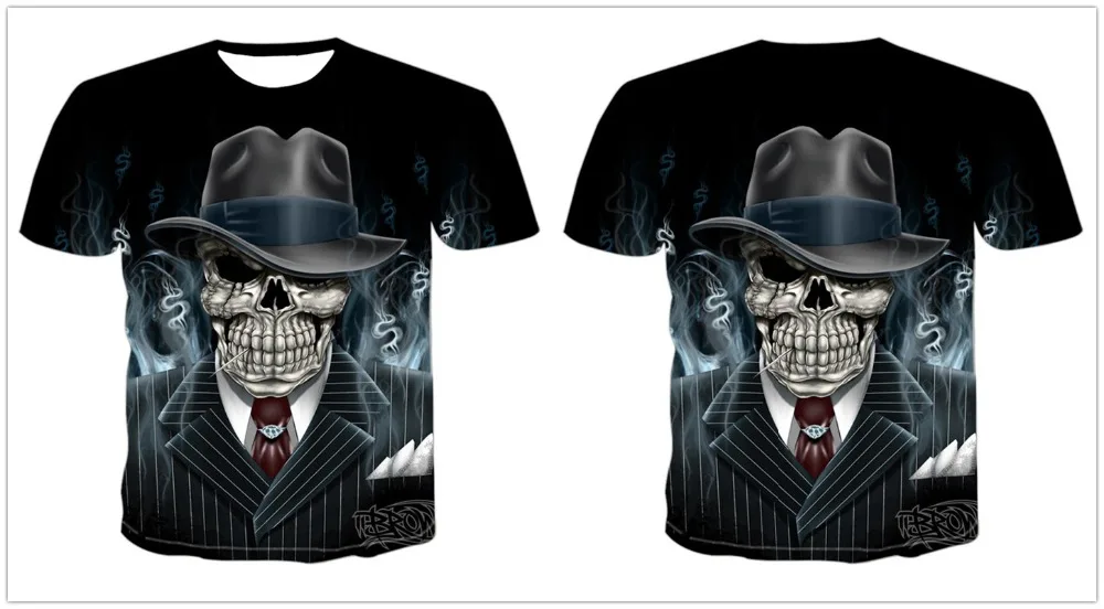 Мужские футболки, повседневные футболки с круглым вырезом и коротким рукавом, модная уличная одежда в стиле хип-хоп, 3D футболка с черепом