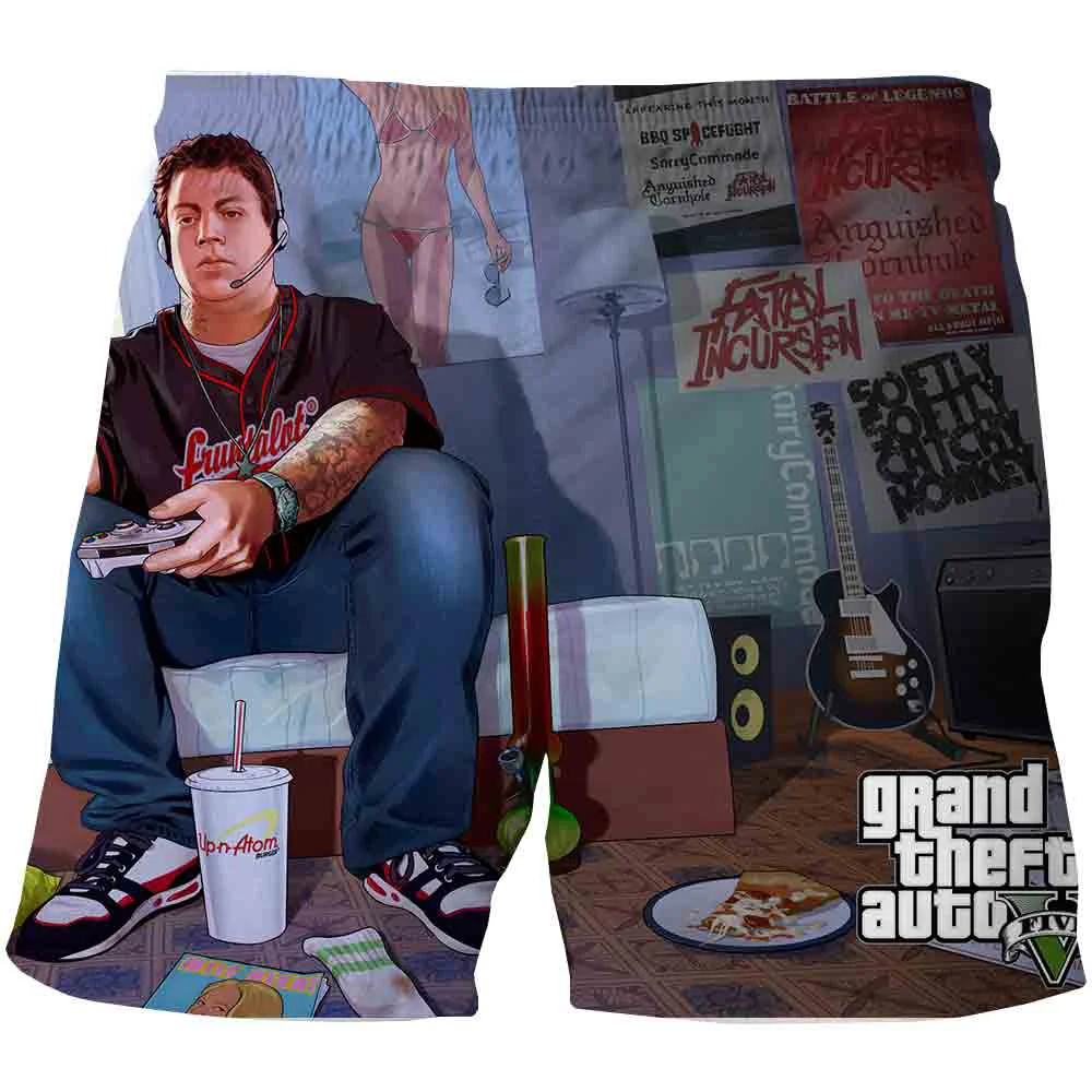 Шорты для мальчиков и девочек с 3D-принтом GTA 5, дышащие пляжные с...