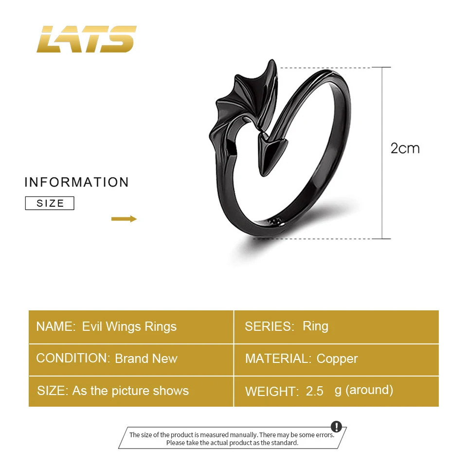 LATS Punk винтажный зловещий крылья кольца для мужчин и женщин обручальное кольцо для пары Открытое крыло Ангела версия кольца корейская бижутерия