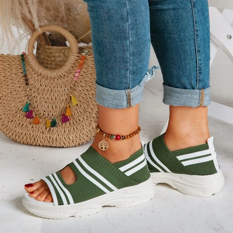 Сандалии женские на платформе и высоком каблуке, Повседневные вязаные кроссовки, без застежки, туфли с открытым носком, лето 2022