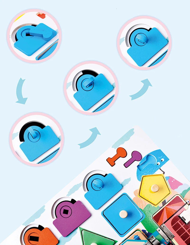 Деревянная доска Монтессори с застежками и защелками, обучающая дос...