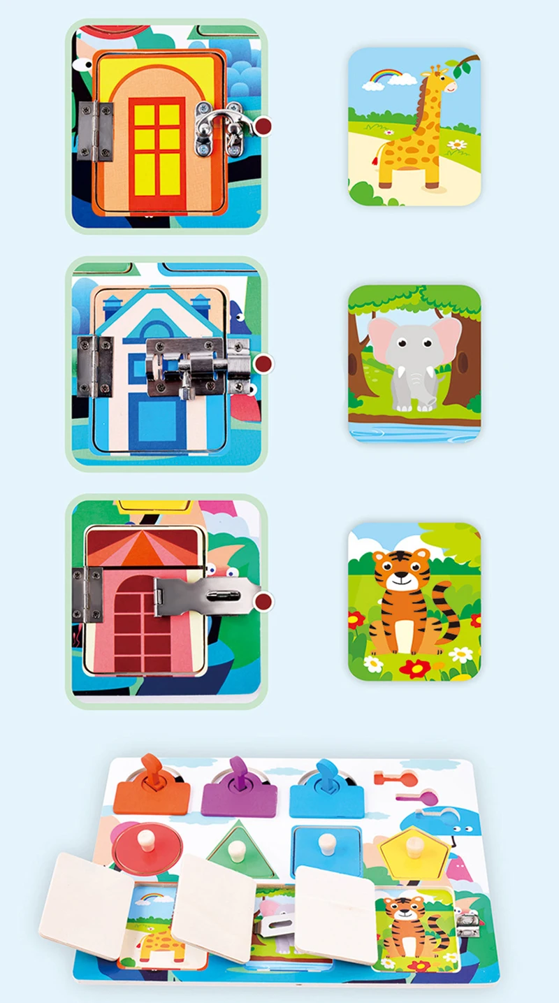 Доска для захвата вручную по методике Монтессори, Игрушки для раннего развития, игрушки для детей, пазлы в виде животных с замком, подарок для детей, деревянные игрушки головоломки