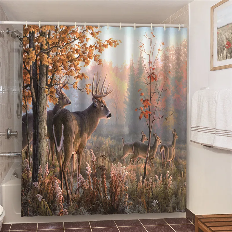 Красивая бамбуковая занавеска для душа с природным ландшафтом леса,...