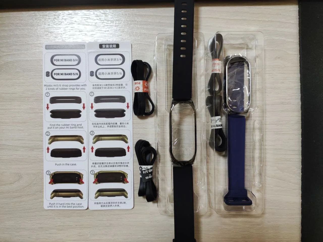 Товар был доставлен вовремя и пришел быстро и бережно. Браслет поставляется с двумя адаптерами для Mi Band 5 и 6 и Mi Band 3 и 4. Таким образом, она адаптируется ко всем поколение браслетов.