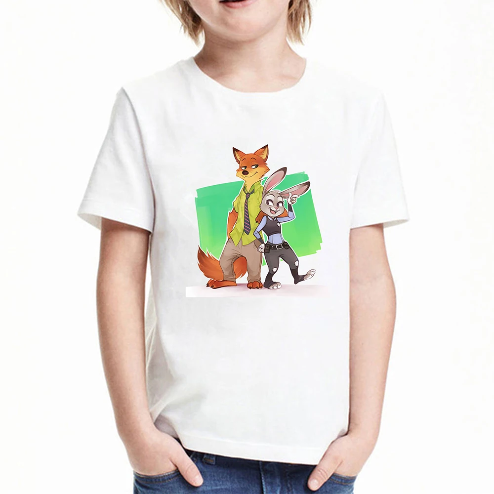Футболки для девочек, летняя мода, лиса, Ник, зайчик, Джуди, милый топ для малышей, футболка, забавная мультяшная детская одежда с Zootopia