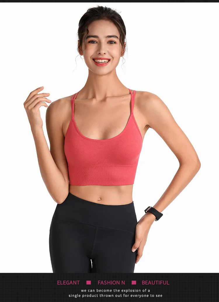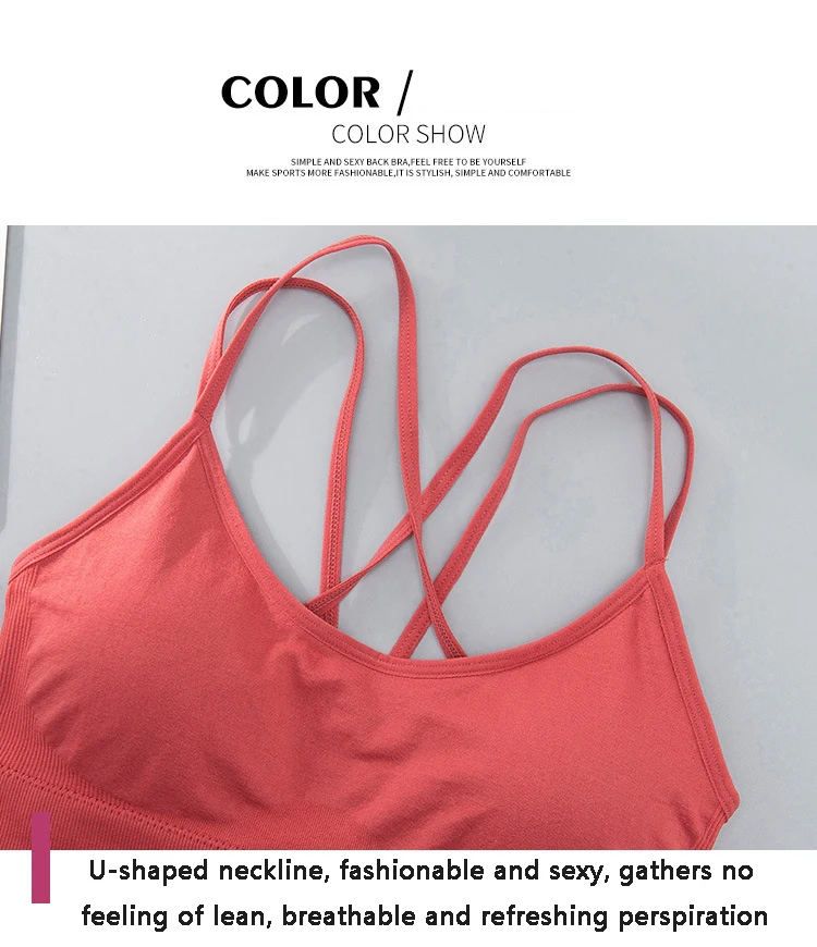Размера плюс спортивный бюстгальтер Быстросохнущий дышащий пуш-ап тонкий ремешок перекрещивающийся спортивный Спортивный противоударный женский спортивный бюстгальтер для бега