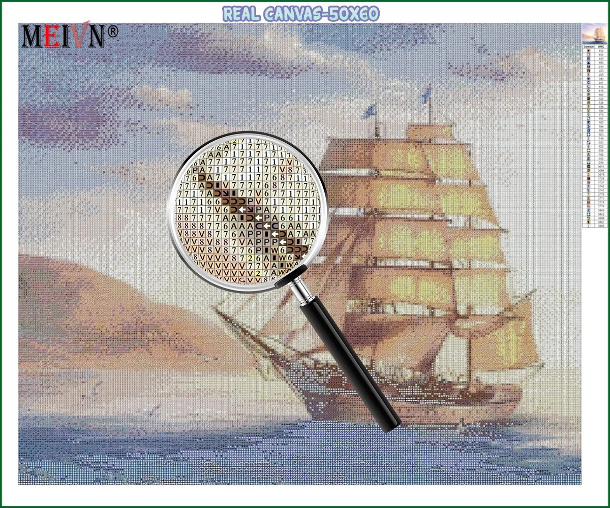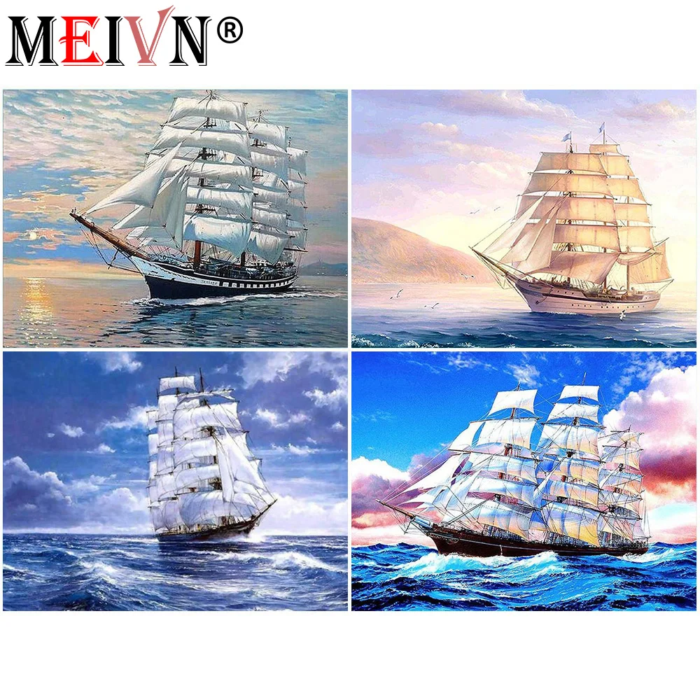 Алмазная живопись MEIVN 5D сделай сам, полностью квадратная вышивка морем и парусником, пейзаж стразы, Набор для творчества