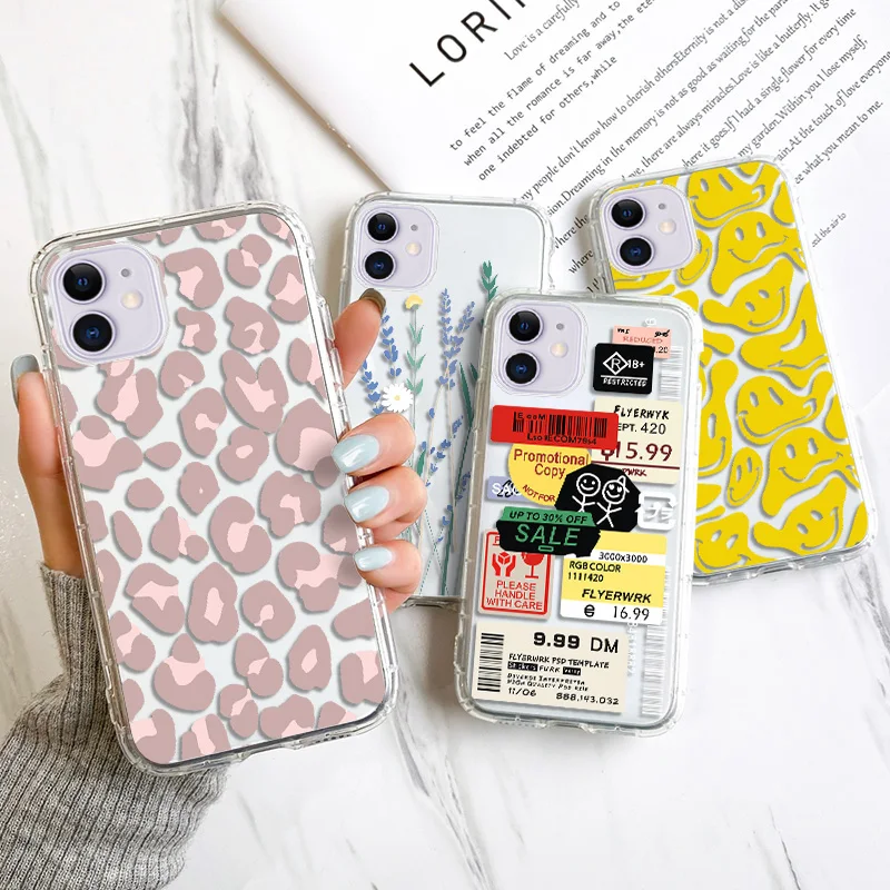 Чехол с леопардовым рисунком для iPhone 11 12 Pro Max, прозрачный ч...