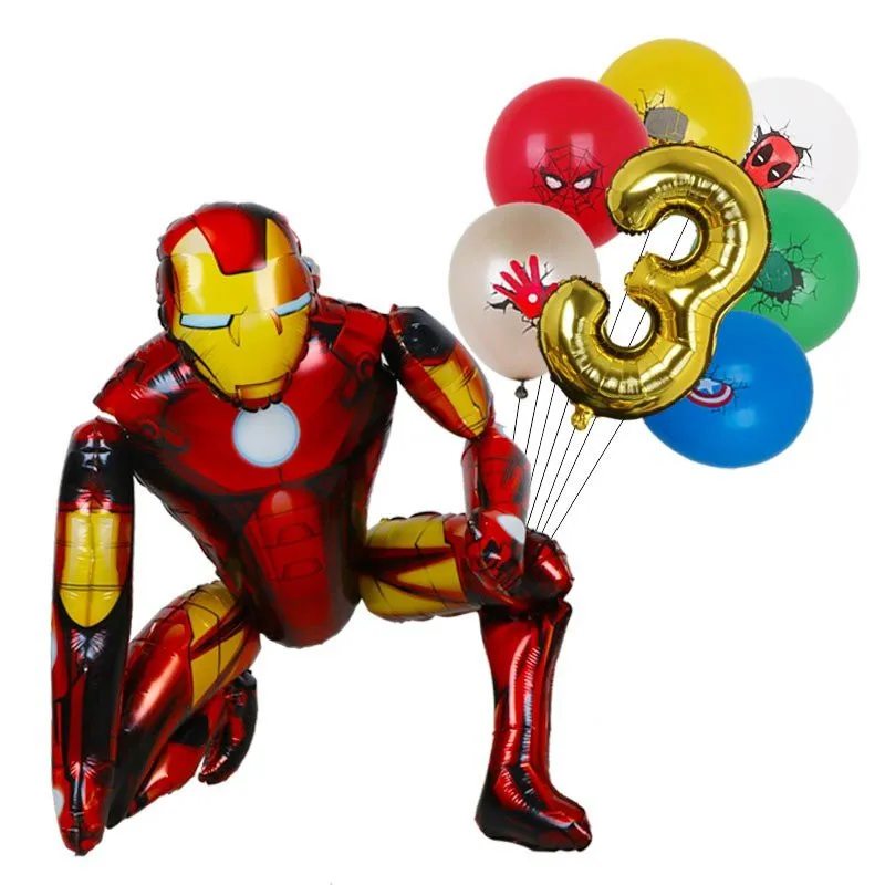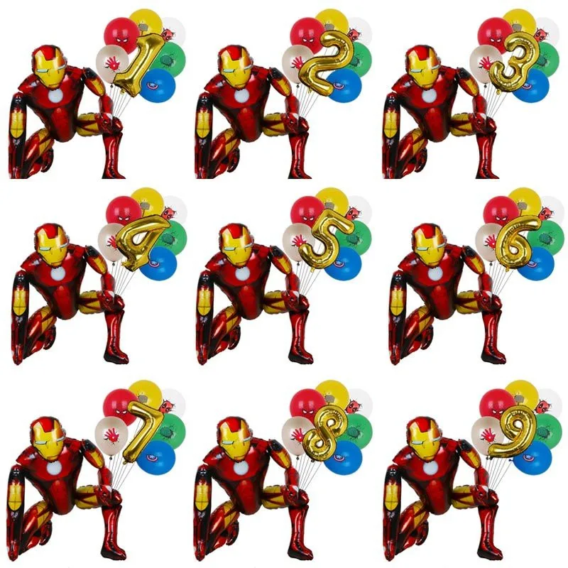 Фольгированные воздушные шары в стиле Марвел, шары Железного Человека-паука, номер 1-9, 32 дюйма, для украшения детского и взрослого дня рождения, 1 комплект