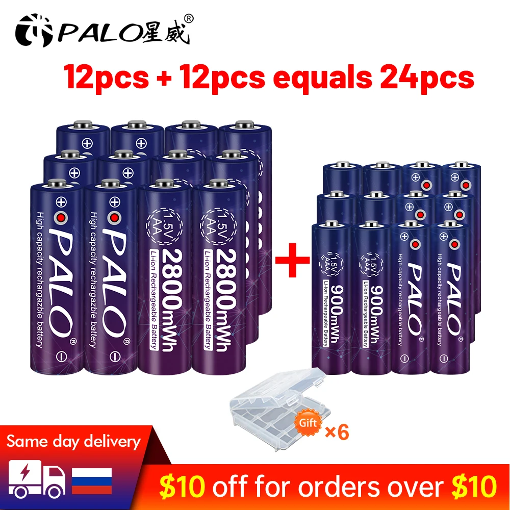 Литиевая аккумуляторная батарея PALO 1,5 в AA + AAA, AA МВтч AAA МВтч, литий-ионная батарея для игрушек, часов, MP3-плеера