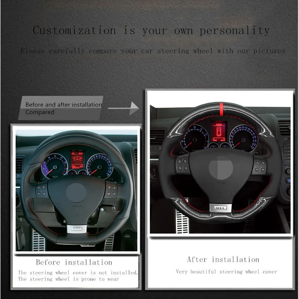 Перед покупкой, пожалуйста, проверьте и сравните рулевое колесо вашего автомобиля с изображением на картинке. (наши чехлы для рулевого колеса изготовлены по индивидуальному заказу, если есть какая-либо разница, они не подойдут)! Это чехол для руля, а не для руля! Этот товар подходит для Volkswagen VW Golf GTI 5 (V) Golf R32 Scirocco Tiguan(R-Line)
