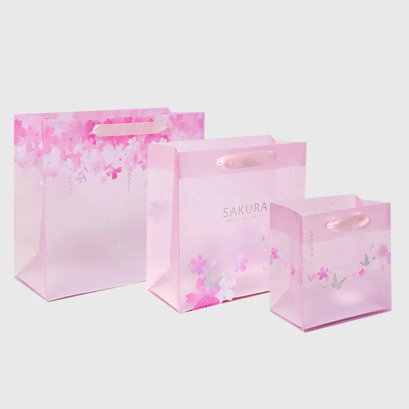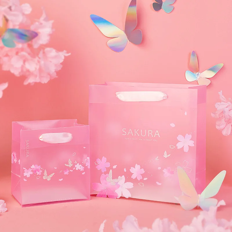 10 шт., цветущая вишня, Пластик сумка лента Сумка-тоут ювелирные изделия косметические подарочная упаковка сумка для переноски розовая Сакура
