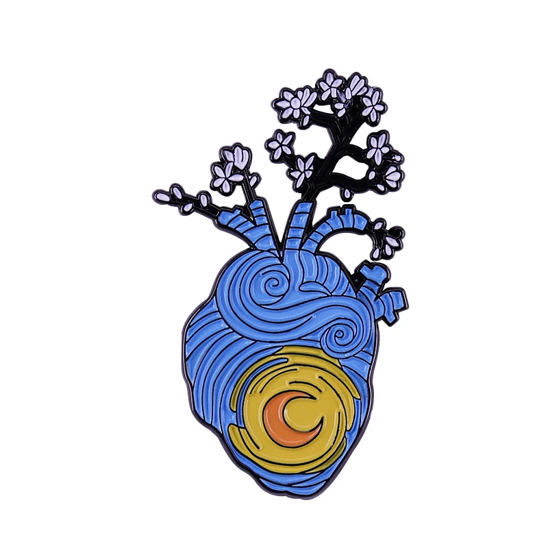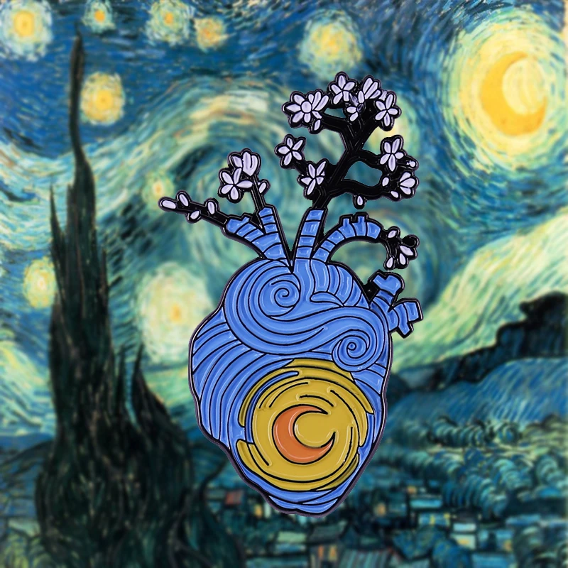 Брошь Звездная ночь в форме сердца Винсента Ван Гога живопись искусство Эмаль Булавка тату Романтический Готический значок