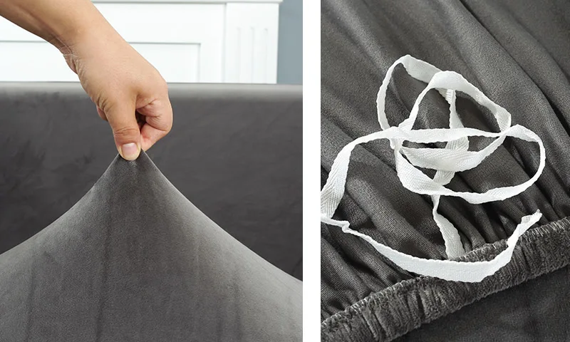 3. Сначала Подключите нескользящую полосу к середине, обратите внимание на одну сторону нескользящей ленты, а затем Отделите ткань плоской, сначала посередине, а затем с обеих сторон. 4. Переверните диван и используйте белую веревку в нижней части, чтобы носить дополнительную ткань и привязать ее друг к другу в нижней части.