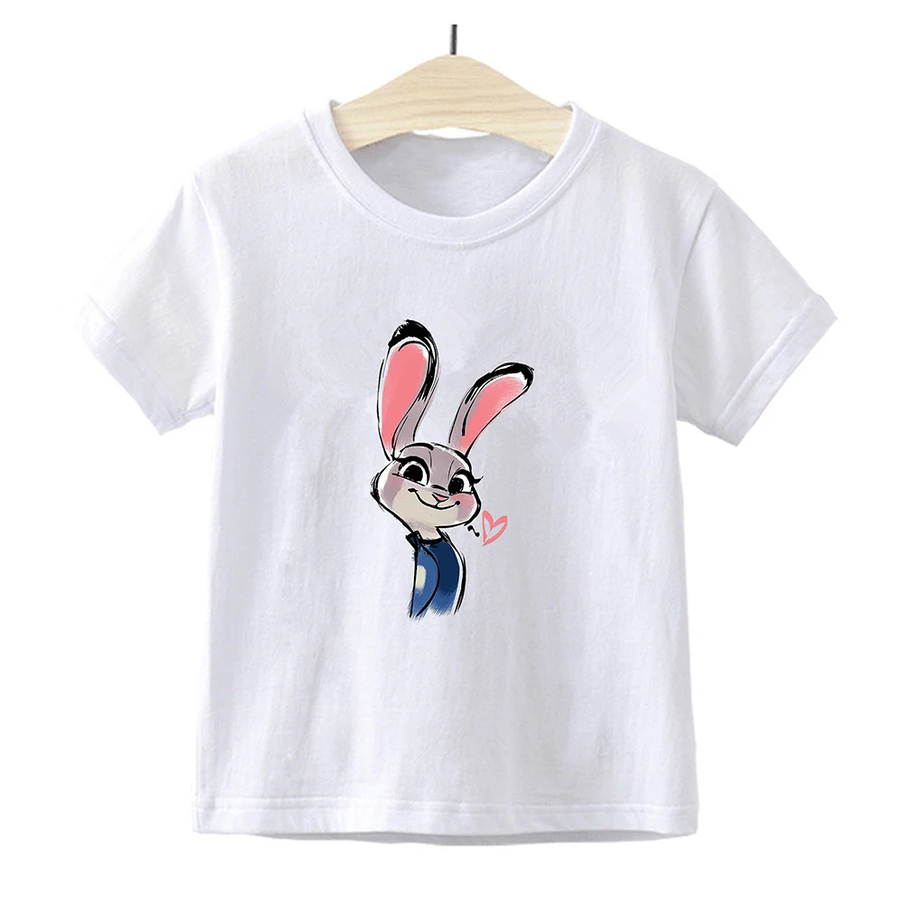 Kawaii Judy Bunny футболка для девочек с принтом, модный летний топ с коротким рукавом для малышей, детская одежда с мультипликационным изображением зверополис