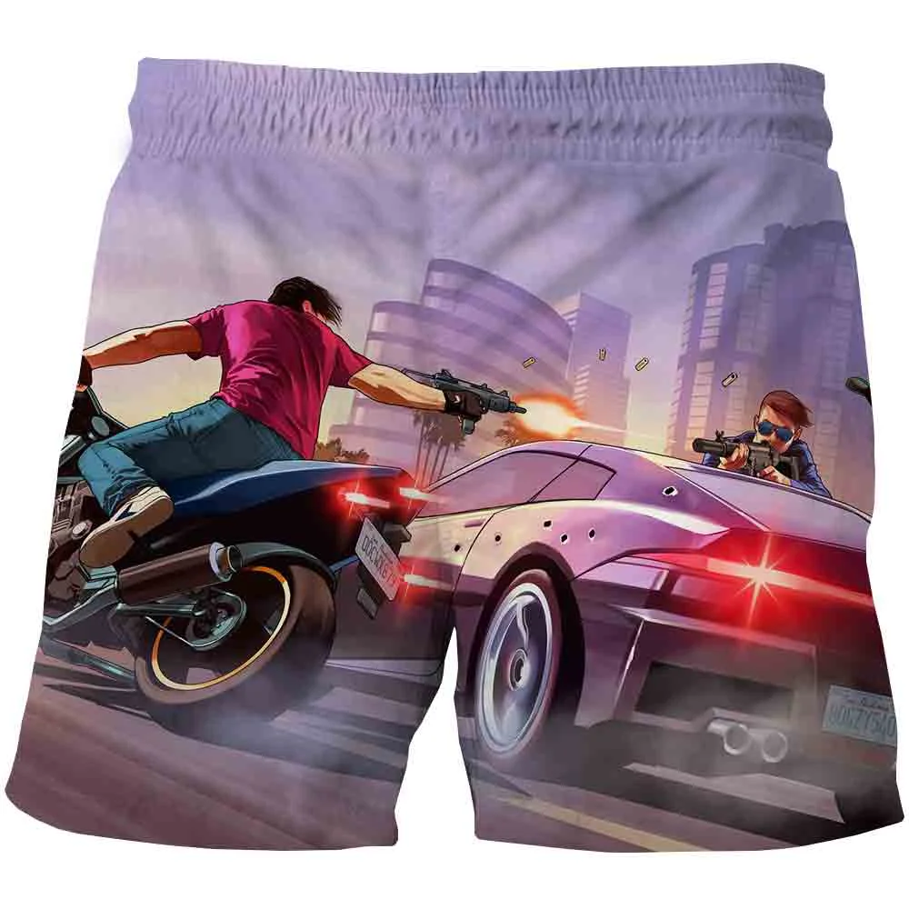 Шорты мужские пляжные с 3D-принтом, модные быстросохнущие, для путешествий и отдыха, уличная одежда для игры GTA 5, модные, лето 2021
